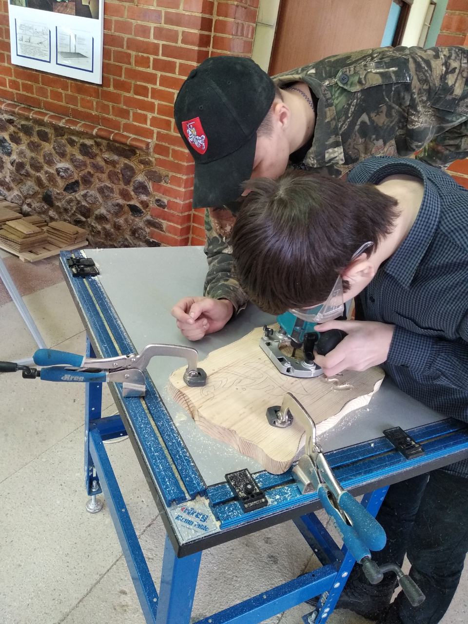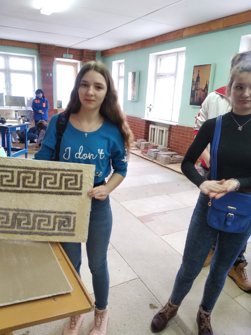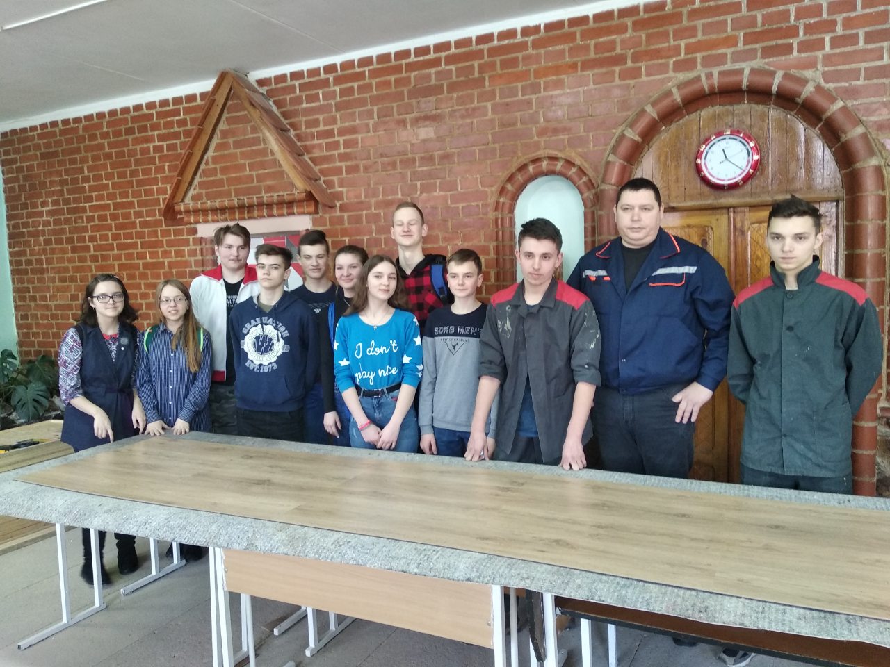 В завершение мероприятия в учебно-производственной мастерской укладки напольных покрытий мастера производственного обучения Филиппов С.Н., Бурибо М.И., Цалко Н.Е. и Плотницкая Е.Р. совместно с учащимися провели мастер-классы по укладке ламината, керамической плитки, декоративной штукатурки с использованием трафарета, ручного и электрического фрезера. Учащимся представилась возможность быть штукатурами, облицовщиками, укладчиками напольных покрытий.